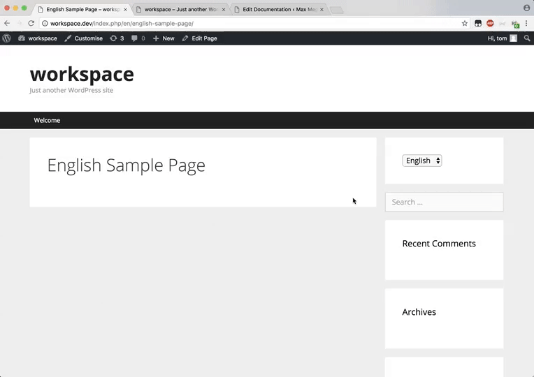 We now have 2 menus: one English and one German, each tagged to their respective menu locations.